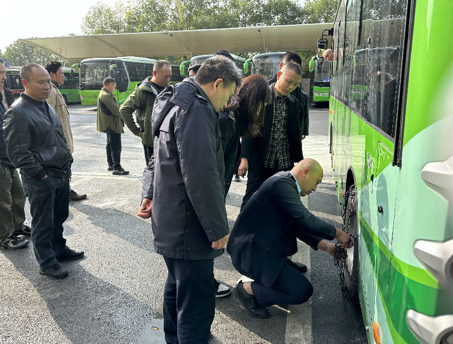 第二项是由机务人员详细讲解车辆防滑链的正确安装知识,包括安装前的准备工作、安装步骤及注意事项等,并由其进行安装防滑链的现场演示。随后由驾驶员依次按照教学进行实际操作体验,确保每位驾驶员都能熟练掌握防滑链的安装技能。