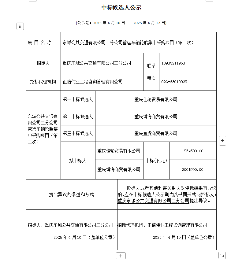 亚洲十大网赌信誉平台二分公司营运车辆轮胎集中采购项目(第二次)中标候选人公示