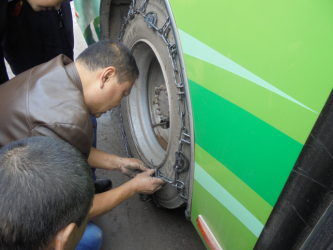 (进行防滑链操作演练)