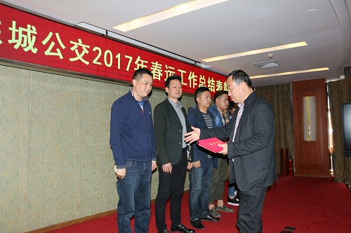 随后,公司董事长舒渝同志宣读了《2017年度春运工作表彰的决定》,公司领导、部门负责人对获奖的36名同志进行了颁奖。