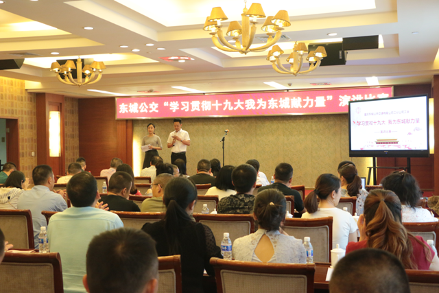 为深入学习贯彻落实党的十九大精神,引导公司广大干部职工进一步坚定理想信念,增强责任感和使命感。5月17日,东城公交在金鹰酒店会议室组织开展了“学习贯彻十九大,我为东城献力量”演讲比赛活动。出席此次活动的领导有董事长舒渝同志、总经理助理苏成元同志,此外还邀请了集团党群工作部代表参加本次活动。各部门、经营单位负责人、管理职工及一线驾乘人员代表共70余人参加活动。
