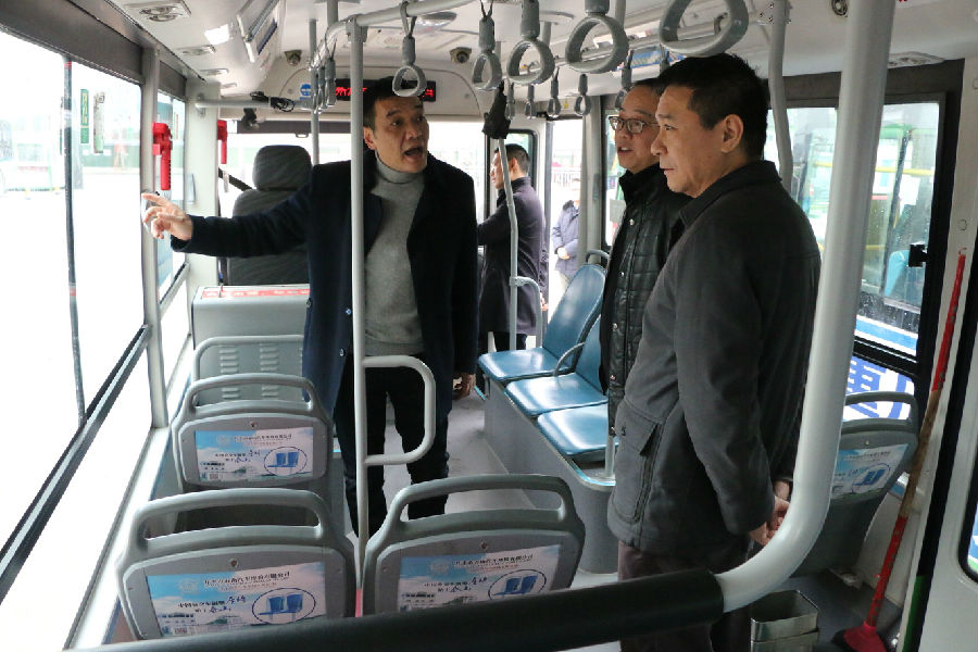 在慰问的同时,玉才副总一行对公交站场的设施设备进行了检查,重点查看了车载设备、充电桩设施、车内清洁等情况,并在调度室听取了春运运力安排及安全隐患排查工作的情况汇报,对公司车辆整体整洁卫生给予了充分的肯定。最后,玉才副总对春运安全生产工作提了几点要求:一是牢固树立安全生产观念,加强驾驶员安全驾驶意识,要定期开展主题性、针对性教育培训;二是加强源头管理,做好安全生产隐患排查治理,对发现的问题要立整立改;三是强化服务意识,做好服务下级、服务基层、服务乘客工作,对乘客的咨询和提问要耐心解答,对特殊群体乘车尤其要关心和关注;四是积极应用信息化、智能化的管理手段,提高技防能力,要进一步加强GPS动态监管,推进科技兴安,全力保障春运期间安全生产各项工作落实落地。
