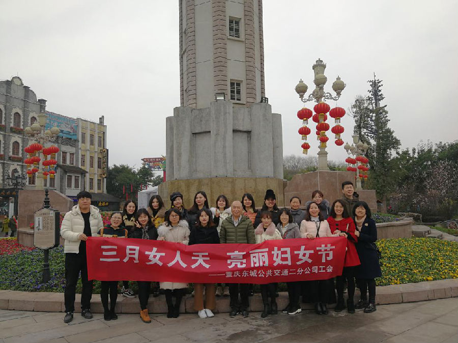 3月8日上午9:30分,本部女职工近30人在公司准时集合,统一乘车前往龙兴影视城。大家漫步在影视城内,游览了“抗战胜利纪功碑”、“《新华日报》营业部”、“国民政府行政院”等仿古建筑,身临其境感受抗战岁月,感受老重庆的魅力。