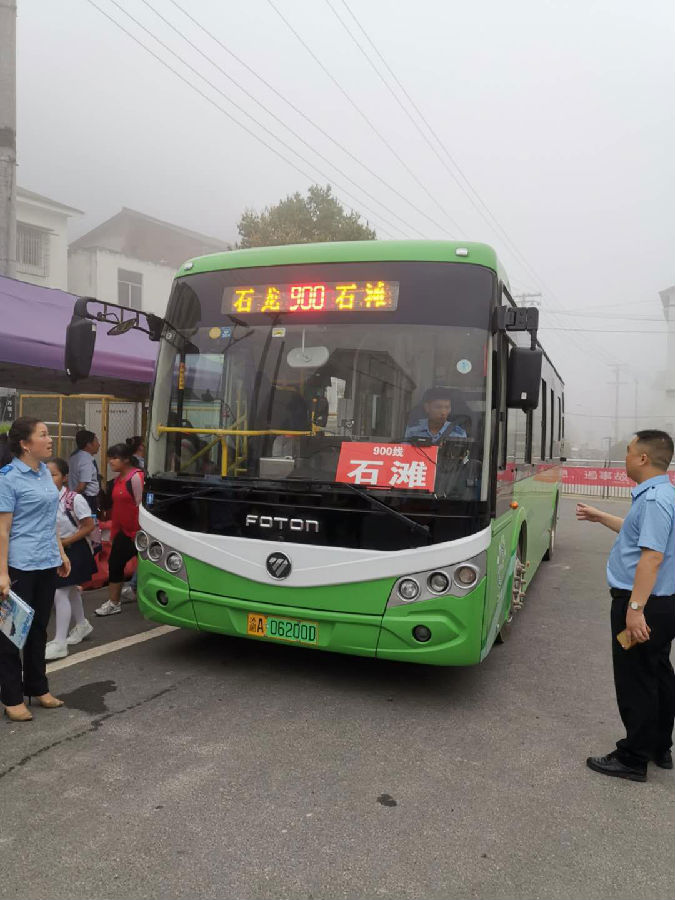 (900路第一班车平安到达终点站石滩)