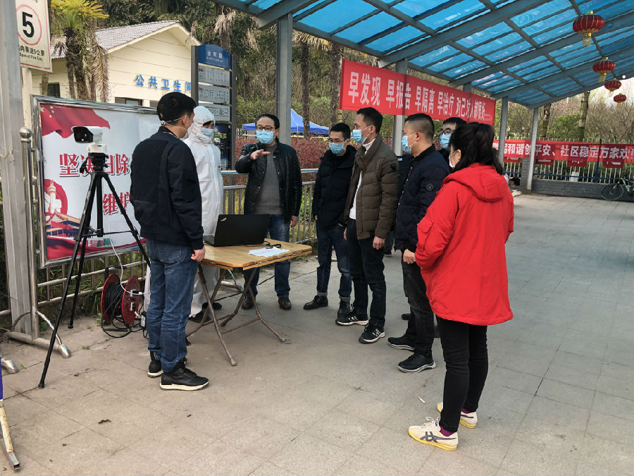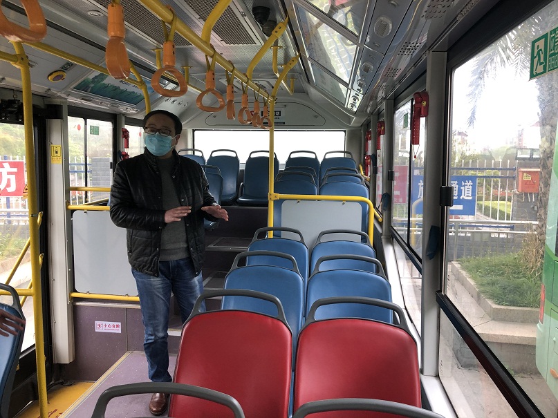 (查看体温检测和车辆消毒情况)