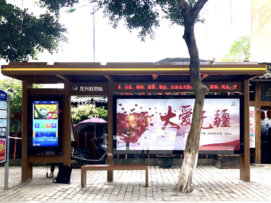 为进一步提升城市公交候乘环境,让市民享受到智慧化出行带来的便利,东城公交与龙兴政府、重庆南大苏富特公司合作,试点建设智慧公交站台。近日,重庆主城区首个全触摸交互智慧公交站台在龙兴政府站上岗实习。