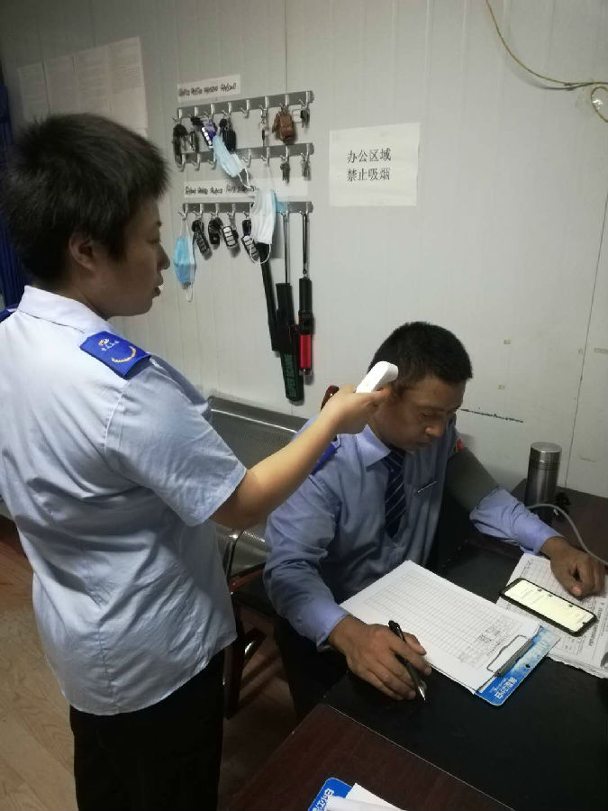 (对驾驶员进行体温和饮酒测试)