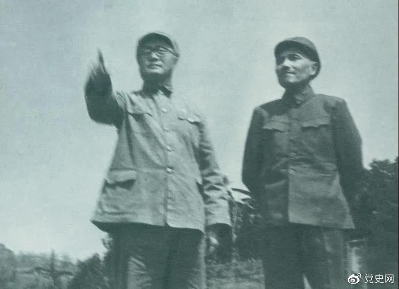 图为刘伯承司令员和邓小平政委指挥渡江准备工作。