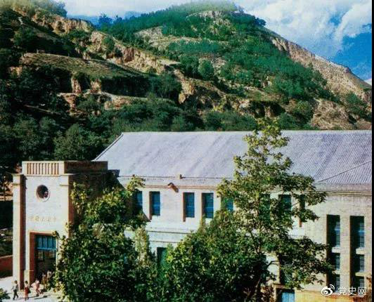 图为中国共产党第七次全国代表大会会址——延安杨家岭中央大礼堂。