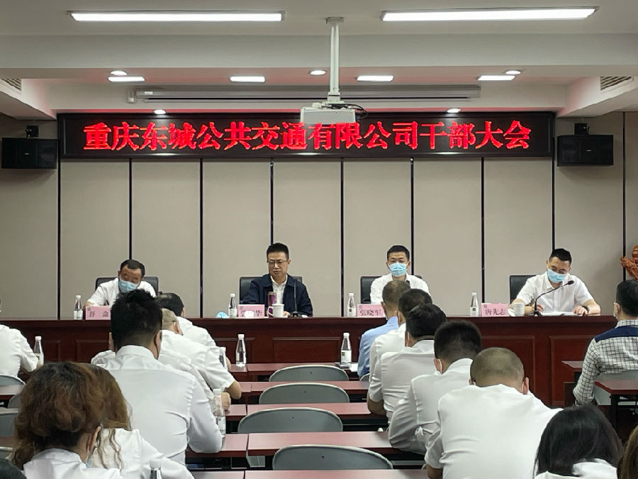 5月11日,东城公交召开干部大会,集团党委书记、董事长张国华出席会议,集团党委副书记、工会主席张晓军主持会议,集团办公室主任陈南、党群部副部长姚程武、东城公交全体领导班子、中层干部、部分职工代表共计40人参加会议。