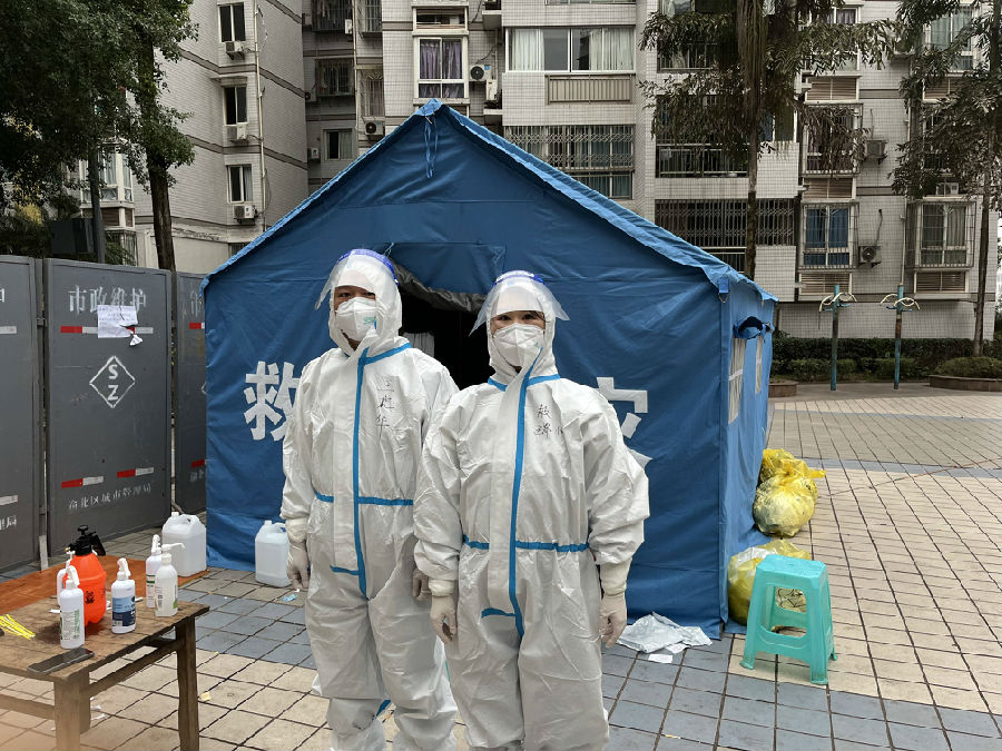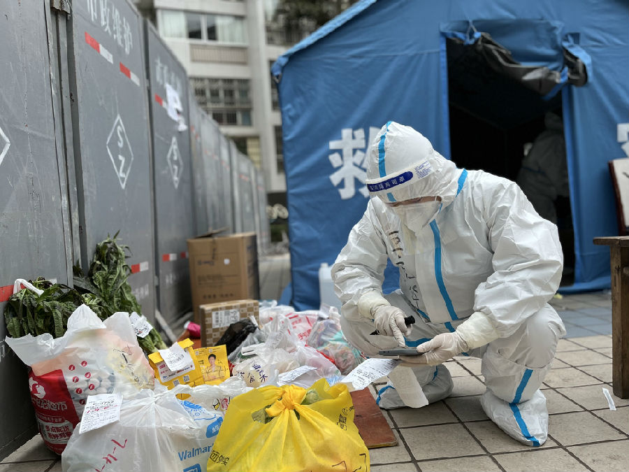 因所在区域被划定为高风险区域阳性病例确诊单元楼后,东城公交龙盛经营部的党员王虎华和重庆出版集团的党员敖瑞悦夫妻二人积极响应号召,原本不同岗位、有着不同职责的二人携手走上了疫情防控的战场。按照社区安排,共同担当起了居民的“速递员”,无论是几十斤重的米面、水桶、还是小药瓶等,他们都及时地将物资送到居民手中,守护了居民的“菜篮子”,帮助居民解决“最后一米”的问题。