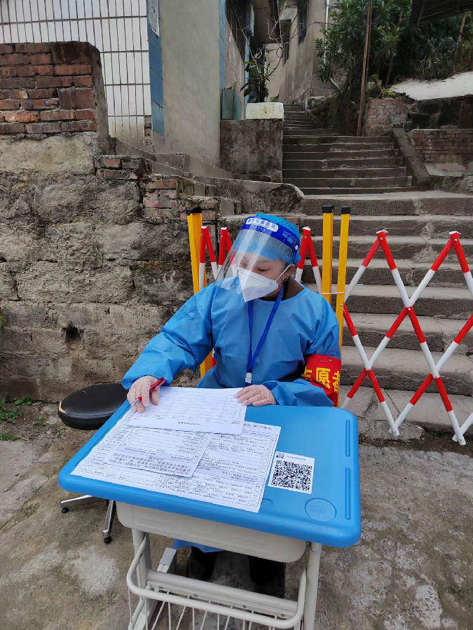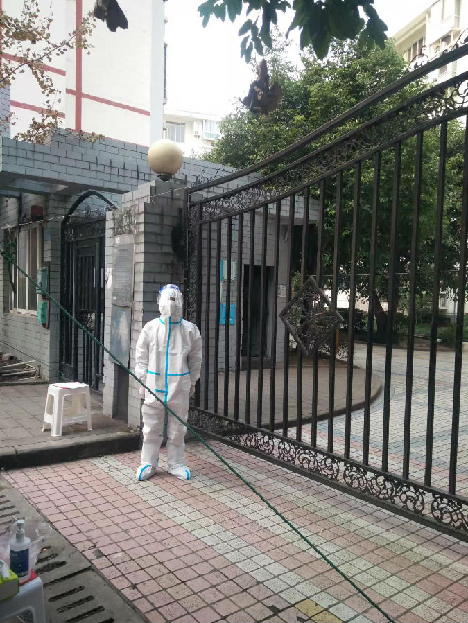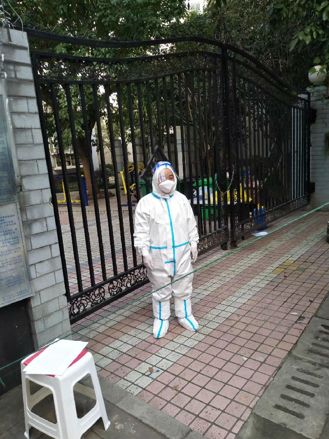 11月21日,巴南经营部杨思理、邹强在港湾一期高风险区卡点值守,高风险区域是疫情防控最危险的地方之一,但杨思理、邹强仍然义无反顾走进高风险区,用行动诠释着大爱无疆,他们说“这些工作总要有人来做,谁做都是做”。