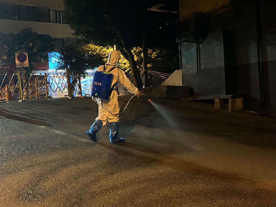 11月22日傍晚,巴南经营部在木洞社区参与志愿者的徐恩平、任龙海、蒋友谊等同志接到木洞镇一社区书记的紧急通知,要对镇上做一次大面积的人工消杀工作。他们义不容辞的投入到消杀工作中,哪怕他们有人才刚刚从上一个疫情工作点下来,连饭都来不及吃,也没有一个人喊苦喊累。“相比医护人员,我们的付出算不上什么。越是在这种困难时刻,共产党员越要冲在前头,更何况是自己并不陌生的消杀工作,疫情没这么严重的时候,我每趟次结束后也会认真给公交车消毒”徐恩平表示。