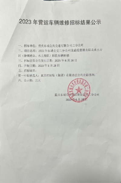 2023年营运车辆维修招标结果公示